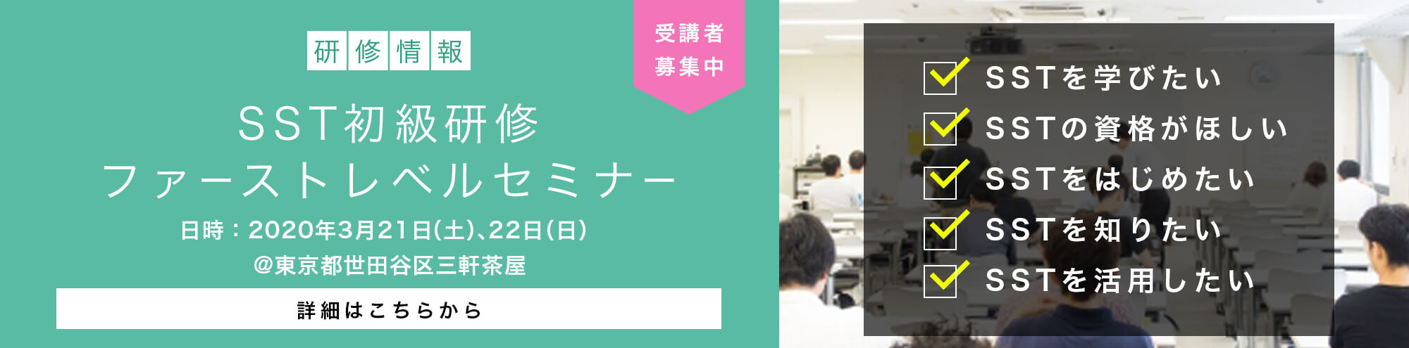 【募集中】【SST初級研修】【東京都世田谷区三軒茶屋開催】2026年2月28(土)・3月1(日)「SST初級研修ファーストレベルセミナー」