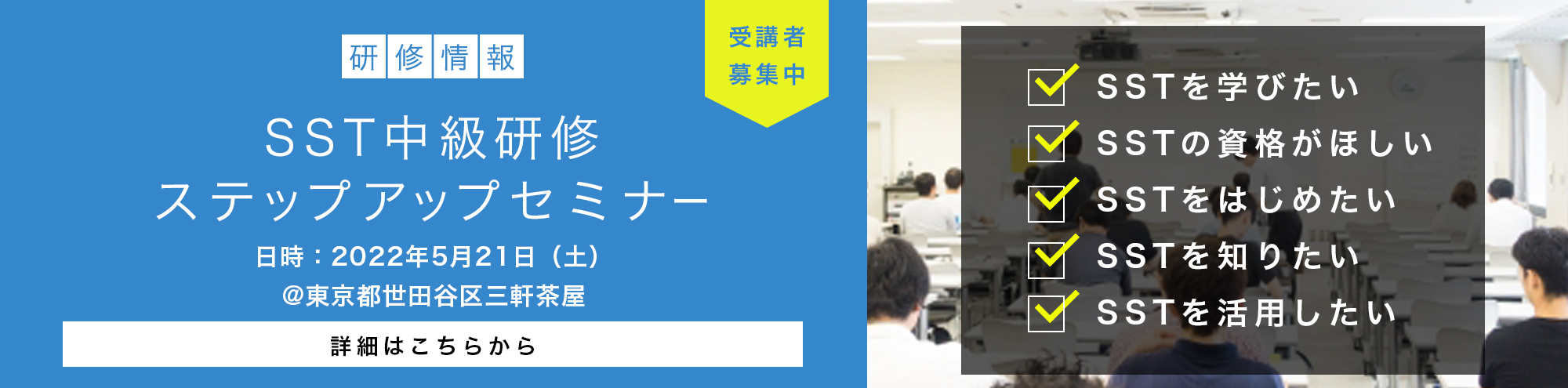 【募集中】【SST中級研修】【東京都世田谷区三軒茶屋開催】2026年4月26(日)「SSTステップアップセミナー」