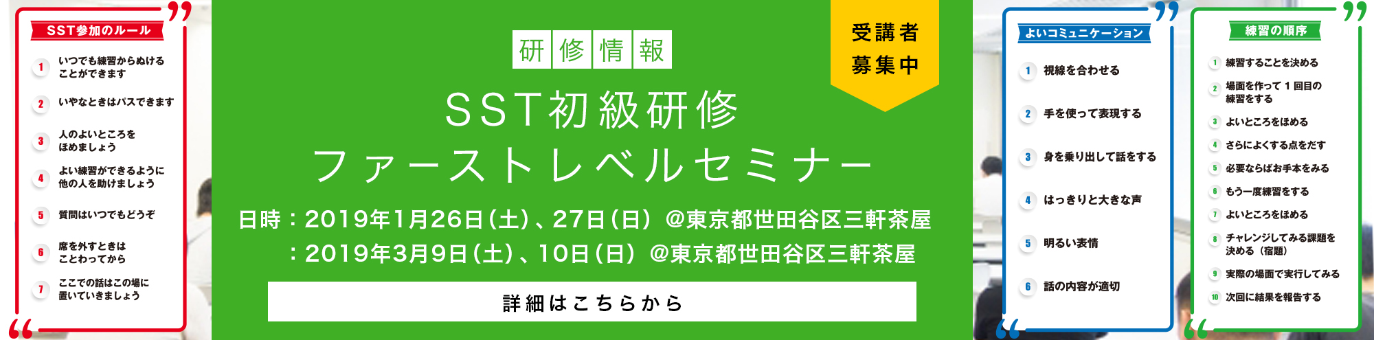 【募集中】【SST初級研修】【東京都世田谷区三軒茶屋開催】2026年2月28(土)・3月1(日)「SST初級研修ファーストレベルセミナー」